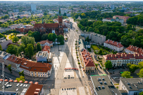 Białystok, widok z lotu ptaka na Rynek Kościuszki i kościół farny