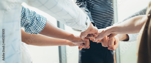 Panoramic Teamwork,empathy,partnership and Social connection in business join hand together concept.Hand of diverse people connecting.Power of volunteer charity work, Stack of people hand.