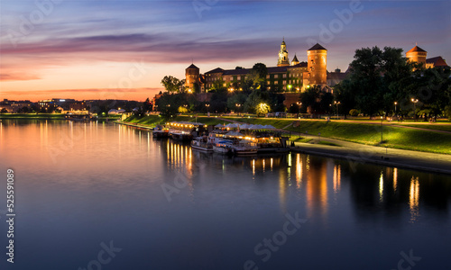 Krakow, Poland. View of the Wawel and the Vistula River at sunrise. Widok na Wawel i rzekę Wisłę o wschodzie słońca.