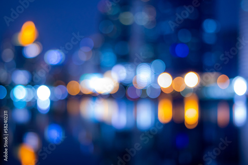 Abstract bokeh night in city background, cityscape at twilight time blurred photo