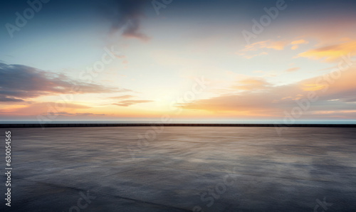 Empty asphalt road and beautiful sky at sunset, panoramic view. High quality photo