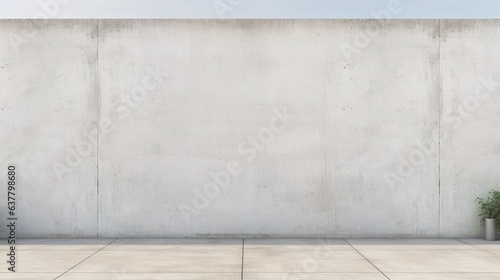 City street with long concrete wall covered in white plaster featuring copy space and mockup