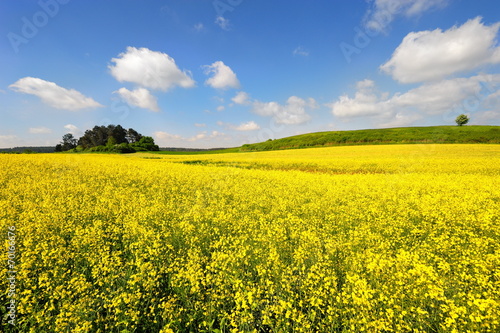 Krajobraz wiejski, z rzepakiem