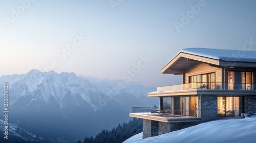 Mountaintop chalet sunset snowy alps winter luxury