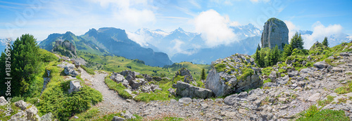 stunning alps view at lookout point Daube mountain, Bernese Oberland. hiking round trail Schynige Platte - Oberberghorn. switzerland.