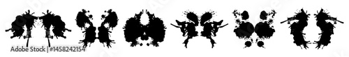 Rorschach test inkblots set isolated on white background. Vector realistic illustration of abstract black ink stains for mental treatment, abstract silhouettes for psychology examination, tattoo image