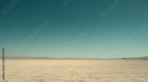 Expansive desert landscape under clear teal sky minimalist nature photography