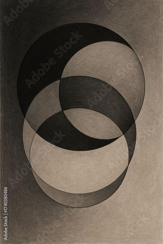 Lunar-Inspired Minimalist Abstract with Charcoal Arcs