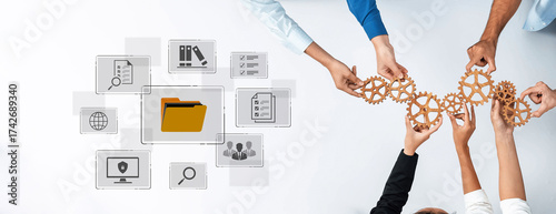 Concept of a document management system for corporate file archiving. This digital platform provides secure data storage and organization for easy information retrieval. Fermion