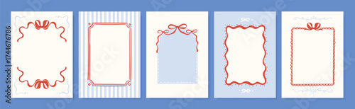Vintage hand drawn frames vector set. Collection frame template in different shape with ribbon decorative. Design for card, poster, cover, background.