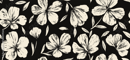 Leaves branch and Hand Drawn doodle Scribble floral plants banner, seamless pattern. Creative minimalist Abstract art background. Design wall decoration, postcard, poster and brochure
