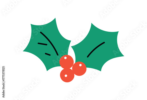 Holly leaves and berries vector, classic minimal — staple element for Christmas invitations and decorations.