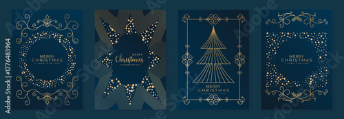 Vintage luxury gold christmas frame card set on dark teal background for invitation and commercial design