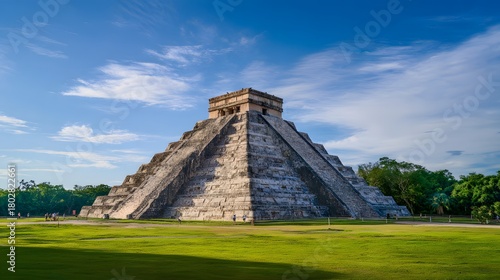 Majestic Chichen Itza pyramid bathed in soft morning light a historic Mexican landscape vista