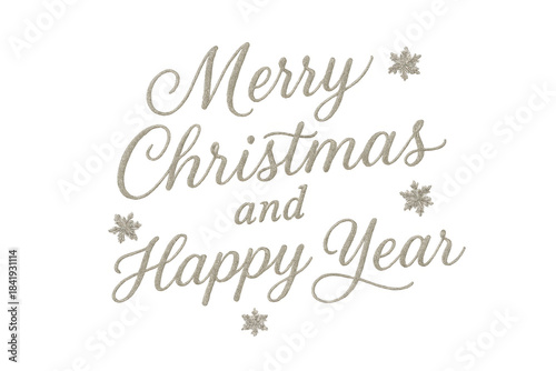 Elegant merry christmas and happy new year calligraphic greeting text with decorative snowflakes on a transparent background