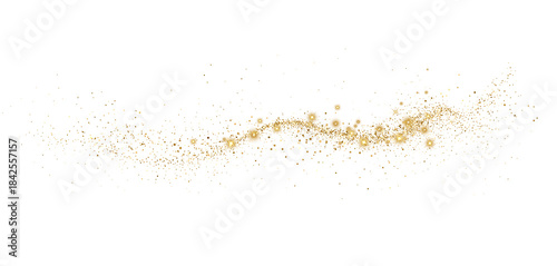Abstract Shiny Gold Glitter design element. Gold Glitter Dust and Stars. Glitter Trail. For New Year, Merry Christmas, Birthday and Wedding greeting card and invitation. Luxury Background design