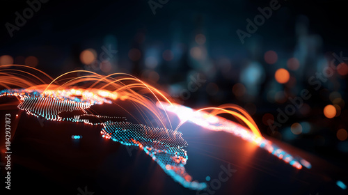 Global cashless payment network visualization glowing data lines world map futuristic fintech theme international transaction display digital finance connectivity