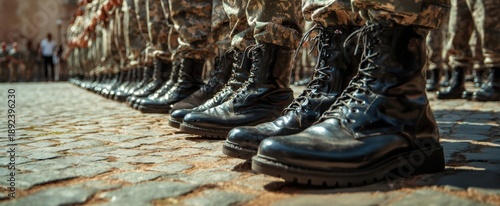 The Boots of a Military Formation Shining on Cobblestone Parade Ground