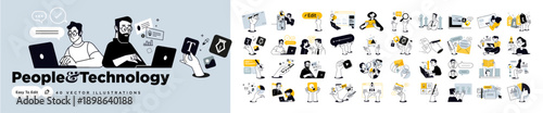 People and technology. Creative vector illustrations of business planning and strategy, management, startup, ecommerce, communication, web design and development, data analytics, social media and mark