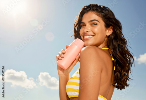 Giovane donna crema solare estate cura della pelle bellezza