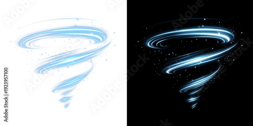 Blue Tornado Wind Vortex Spiral with Light Trails, Transparent and Black Background Versions