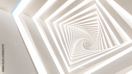 Abstract background rotating geometric tunnel with lighting 3d rendering