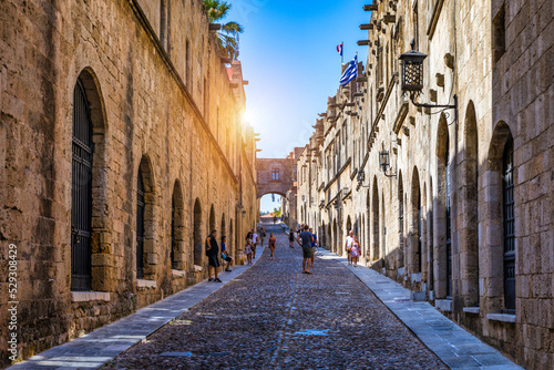 The Street of the Knights, the most famous street in Rhodes old town, Rhodes island, Greece. The Street of the Knights in Rhodes is one of the best preserved medieval monuments in the world. Greece