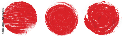 Red circles. Red circle in grunge style on white background. Japanese flag symbol of rising sun.