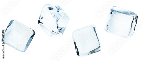 four ice cubes in a row on a white isolated background