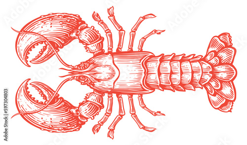 Crayfish isolated on white background. Hand drawn red crawfish, lobster sketch. Seafood vector illustration