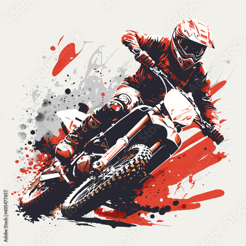 Motocross rider vector illustration with grunge brush background