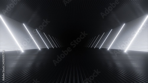 3d rendering of dark abstract sci-fi tunnel with neon light, Futuristic spaceship corridor.