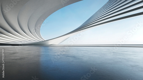 3d render of abstract wavy futuristic architecture with concrete floor.