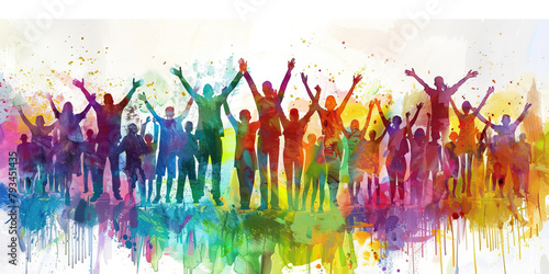 Community: The Gathering of People and Open Arms - Visualize a diverse group of people coming together with open arms, illustrating the sense of community found in religion