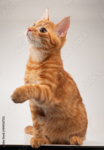 Rudy kot z łapką w górze, kot prosi