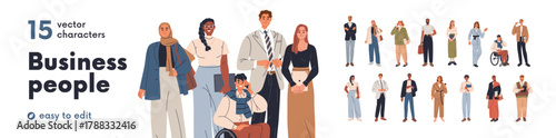 Diverse business people set. Happy office workers, employees, entrepreneurs, managers, executives, CEO characters. Men and women professionals. Flat vector illustration isolated on white background.