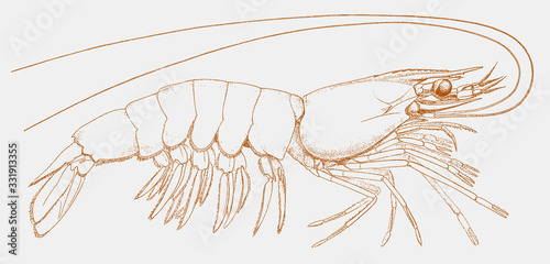 Atlantic white shrimp litopenaeus setiferus, prawn from east coast of North America