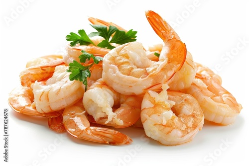 Boiled peeled shrimp on white background