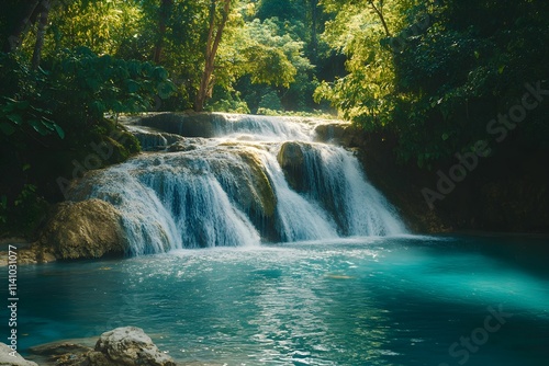 wodospad, tropikalny, dżungla, zielona roślinność, woda, podróże, natura, spokojne miejsce, las tropikalny, rajska natura, wodospady, malowniczy krajobraz, tropiki, krystaliczna woda, relaks w naturze