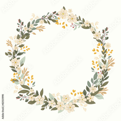 Kwiatowy wianek na jasnym tle. Ozdobna ramka z niezapominajkami, botaniczne tło na kartki z życzeniami do wykorzystania na Dzień Matki, wesele, rocznice, zaproszenia ślubne.