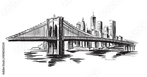 Brooklyn Bridge in New York, hand drawn illustration.
