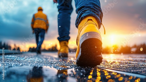 A team of electrical workers installing solar panels on a rooftop, showcasing the transition towards renewable energy sources.