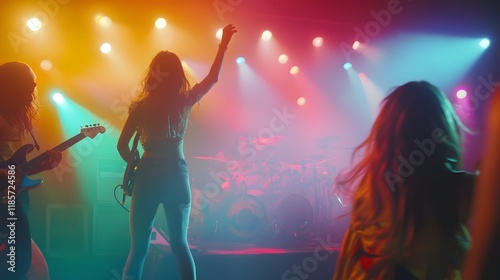 Female Band Performs Onstage Under Colorful Lights