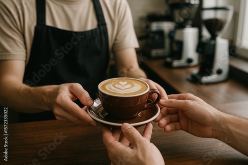 Barista serving crafted latte art.