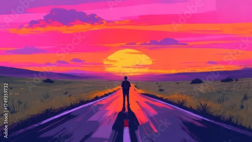 Silhouette on a Road at Sunset - A Journey into the Unknown.