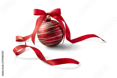 Red Christmas bauble decoration, isolated on transparent background.