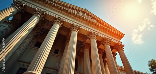 Government building with pillars central bank, financial authority. Neoclassical architecture represents law economy policy. Concept for digital currency CBDC regulation global finance, future of