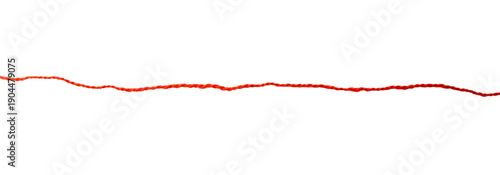 Red thread isolate on white background. Selective focus. Old.