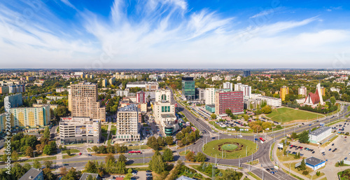 Lublin z lotu ptaka. Skrzyżowanie i okolica ulic Zana i Filaretów w Lublinie widziane z powietrza.