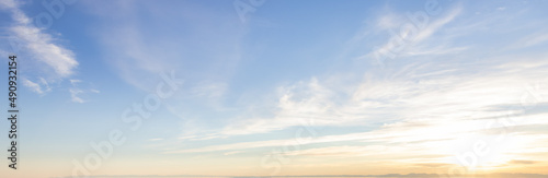 Beautiful Panoramic View of colorful cloudscape with blue Sky in Background during a sunny winter sunset. Taken in Vancouver, British Columbia, Canada.